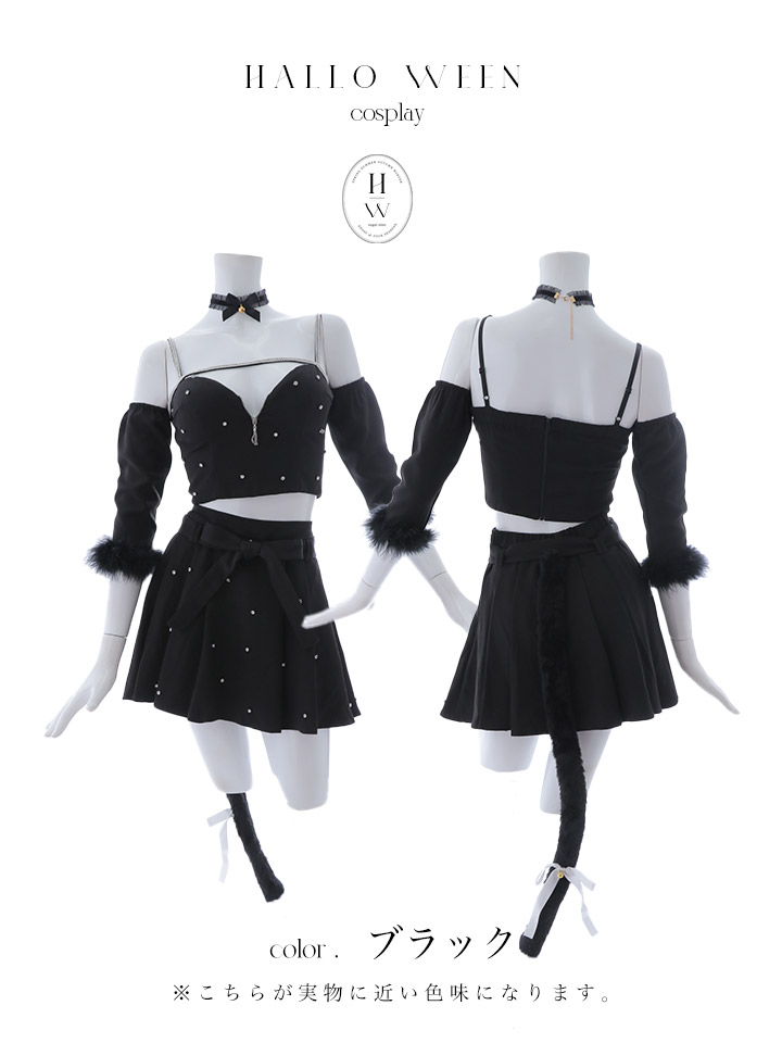 【即日発送!】【ハロウィン】ビジューブラックキャットセットアップ 【コスプレ7点セット】[HC03] [HW-111-YN-dzw-24NR]