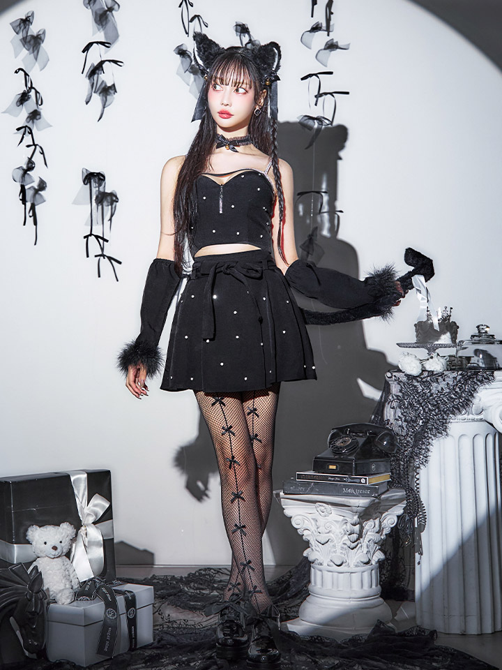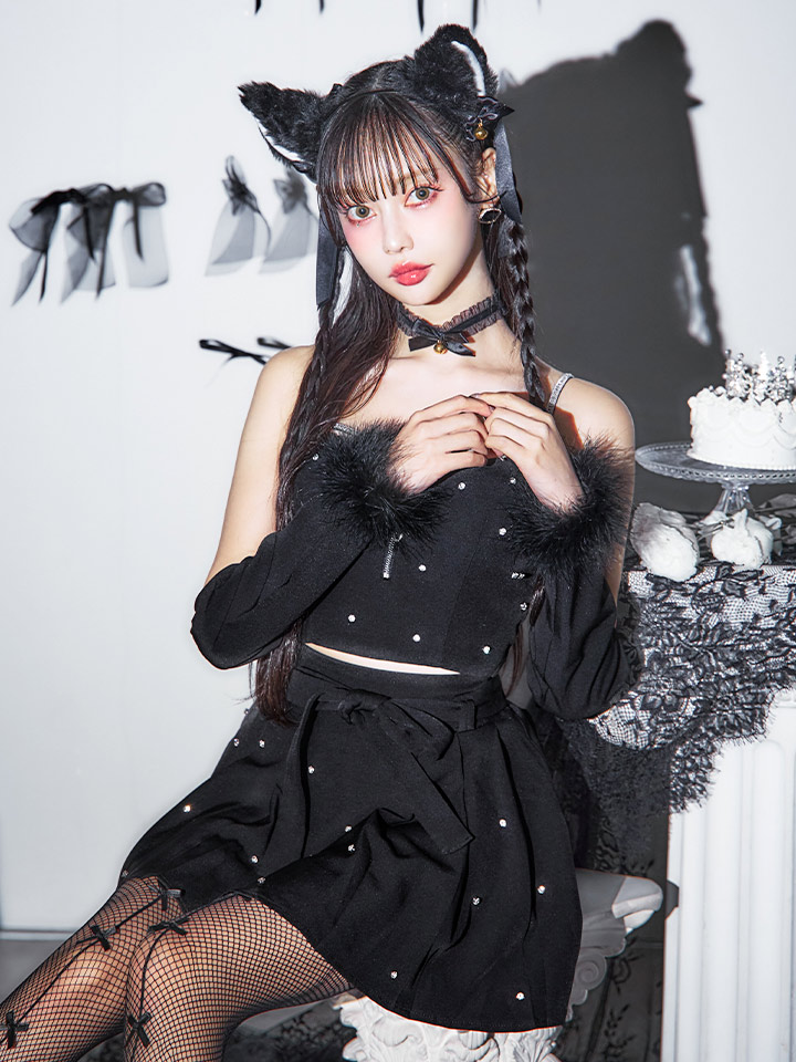 キラキラ輝くビジューがポイント!黒猫コスプレ♥
