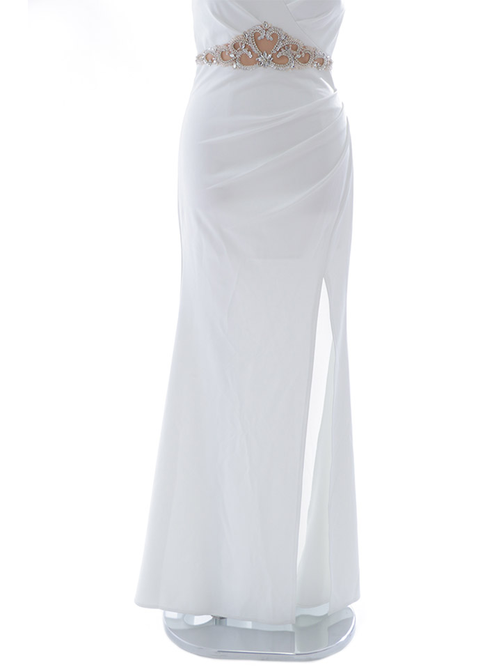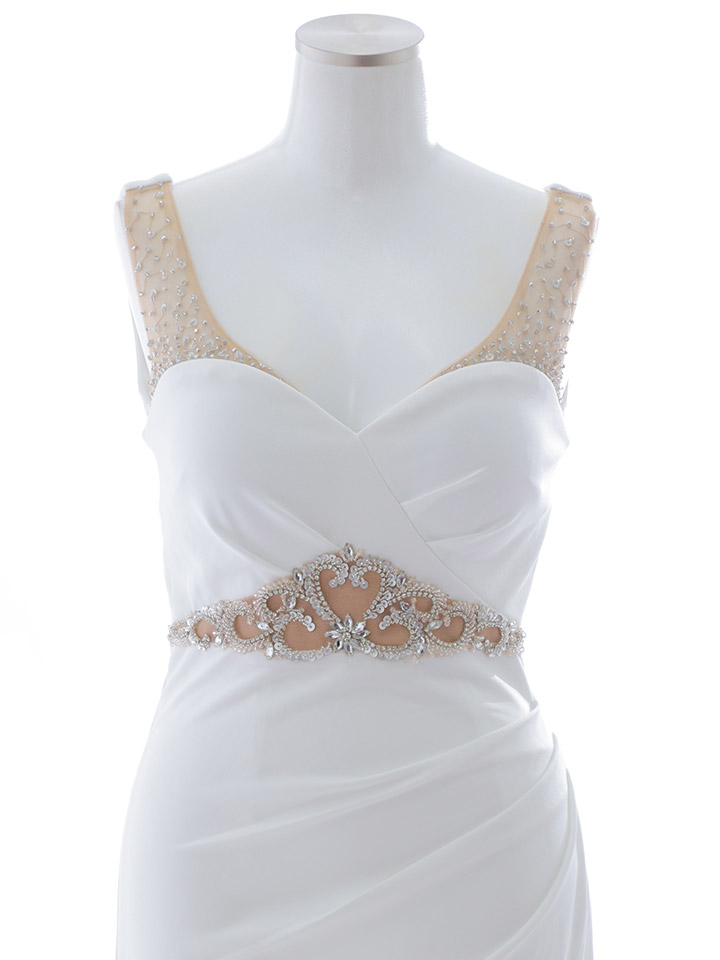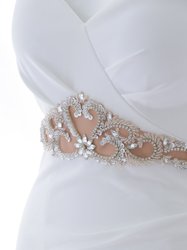 要所に飾られた煌めくビジューが高級感漂う1着。