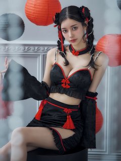 ランジェリー風のウエスト紐がセクシーなチャイナセットアップ。