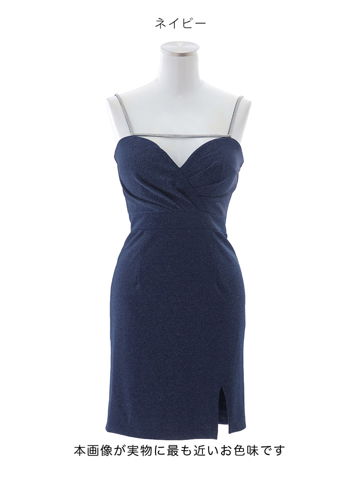 #ネイビー #ゆりお着用 #ミニドレス/ミニ丈 #ワンピースドレス ラメ(グリッター) #無地 #半袖,ショートスリーブ #キャミ #谷間見せ(魅せ) #背中見せ(魅せ) #タイト #スリットあり #JEWELSトレンドTOPICSお知らせ