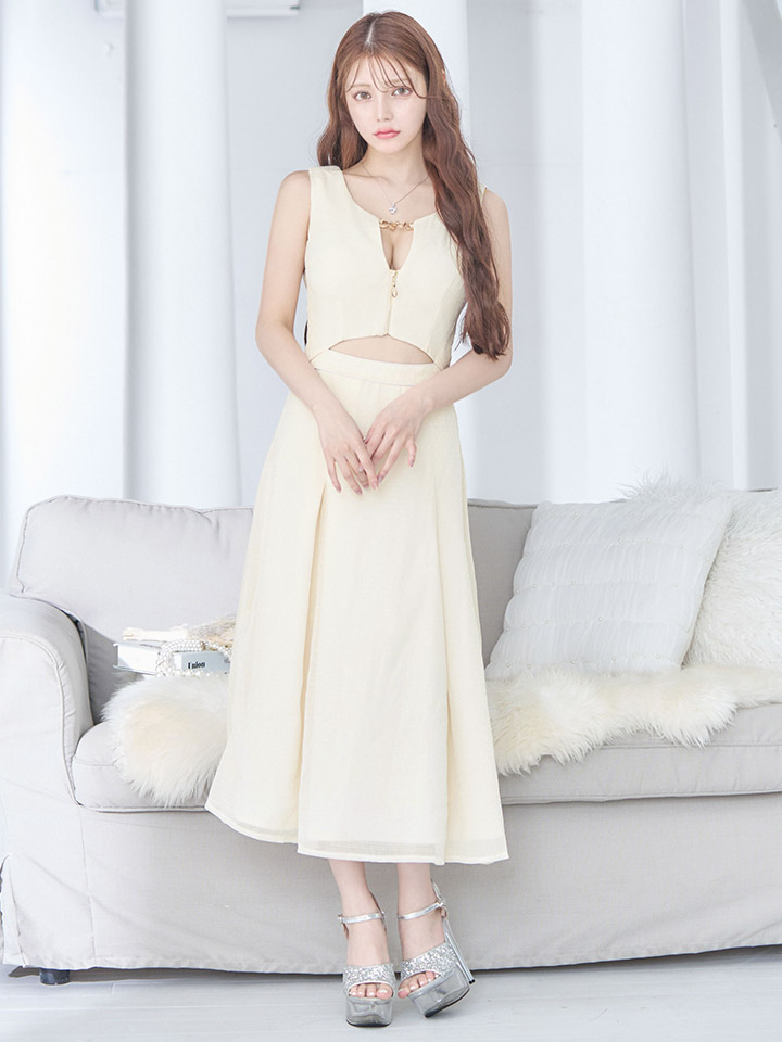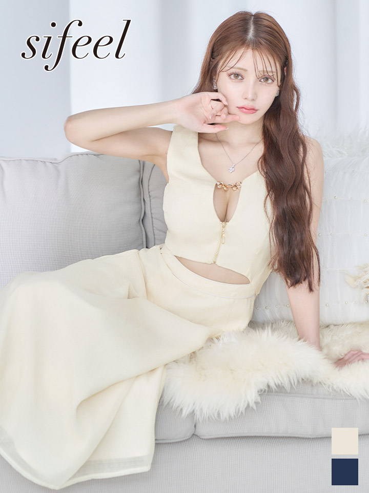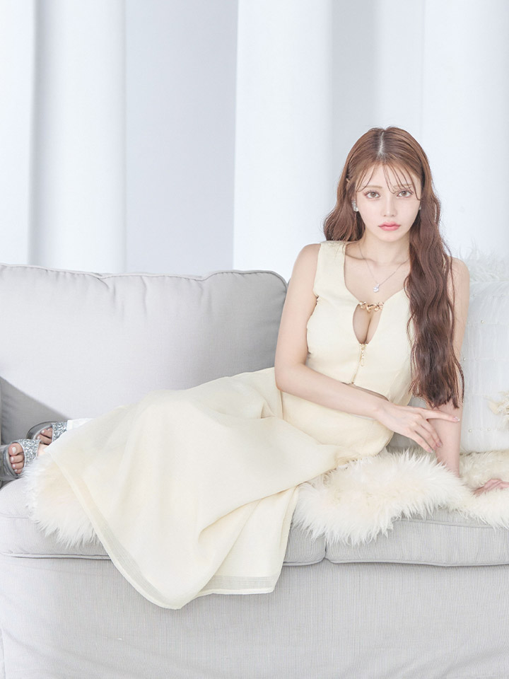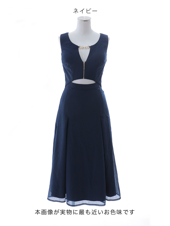 ウエストスリットと谷間しっかり見せデザインでセクシーに大人っぽく。