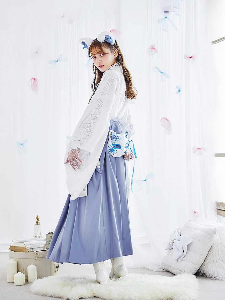【即日発送!】【ハロウィン】猫巫女レース袴 【コスプレ5点セット】 【FREEサイズ/2カラー】[OF01-OMN] [HW-198-SB-dzc-24NN-1]