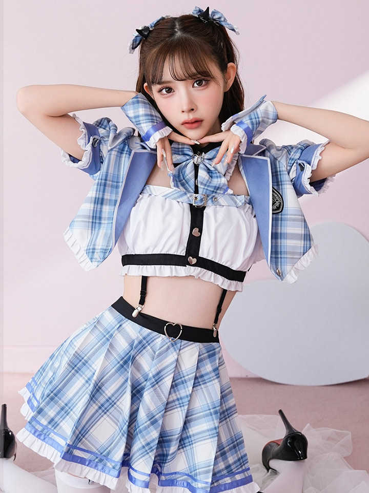 【即日発送】チェックデビル制服コスチューム【マリームーン】【ハロウィンコスプレ10点セット】【フリーサイズ/2カラー】[OF04] [9780ML-2410-2]