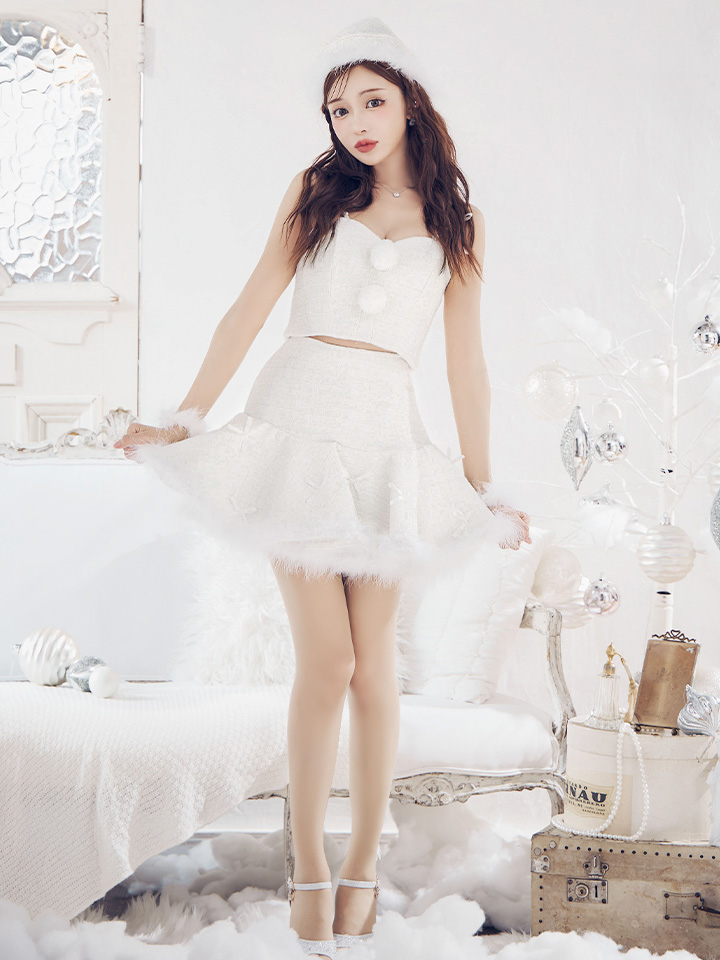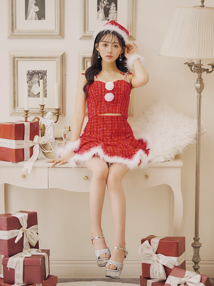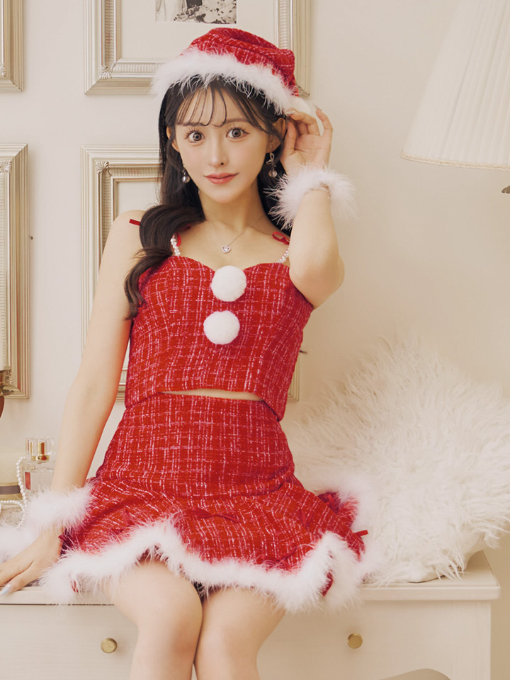 #リボン #ツイード #フレア #ミニスカート #セットアップ #クリスマス #パーティ #サンタコス #サンタさん #ホワイト #レッド