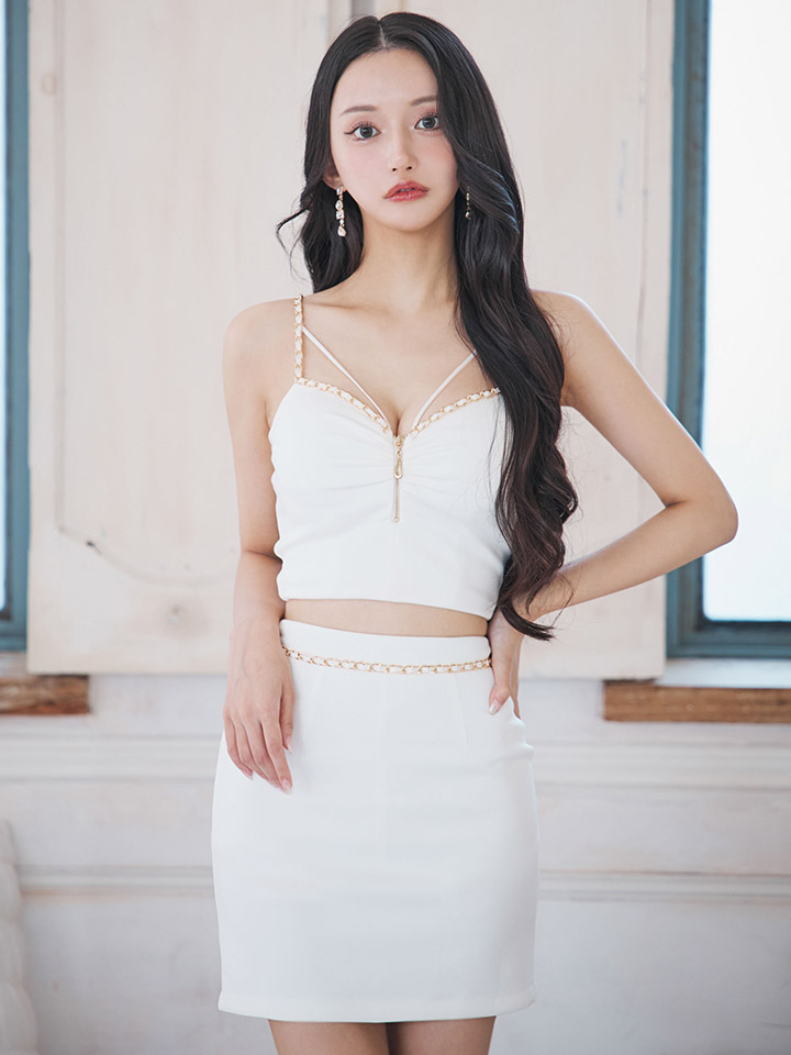 セットアップキャミソール/ジップアップ/チェーン/谷間見せ/背中見せ/ミニドレス/キャバドレス【XS-Mサイズ/5カラー】[OF03-U] 【YN】dzy [5038YNdzy-241028-2]