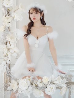 季節感たっぷりの柔らかなニットにファーティペットを合わせたホワイトサンタコスプレ。