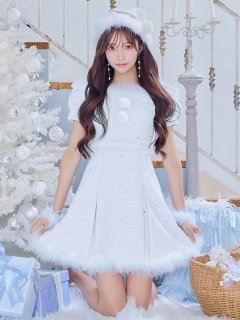 季節感たっぷりの柔らかなニットにファーティペットを合わせたホワイトサンタコスプレ。