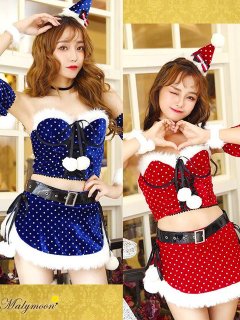 【ノベルティ対象】【即日発送!】【クリスマスコスプレ7点セット】【Malymoon/マリームーン】リボンラッピングサンタセットアップ【フリーサイズ/2カラー】[YMT]