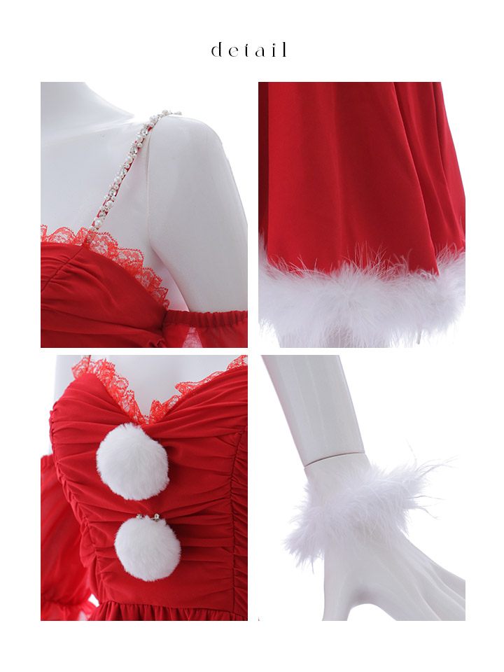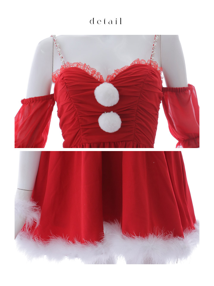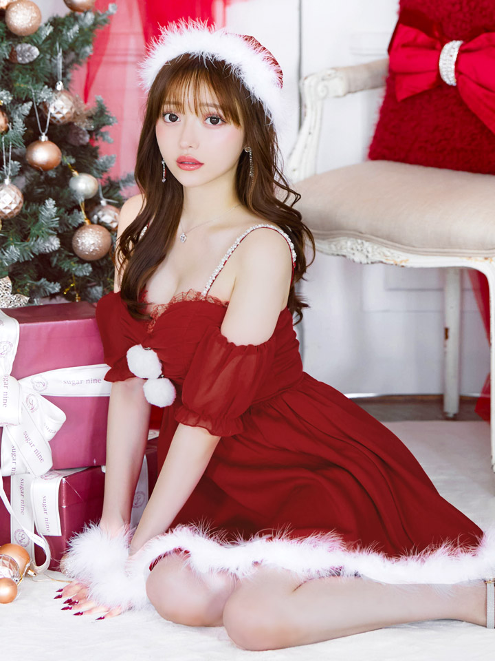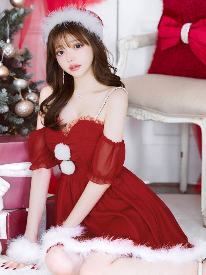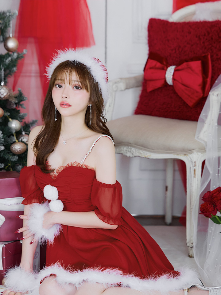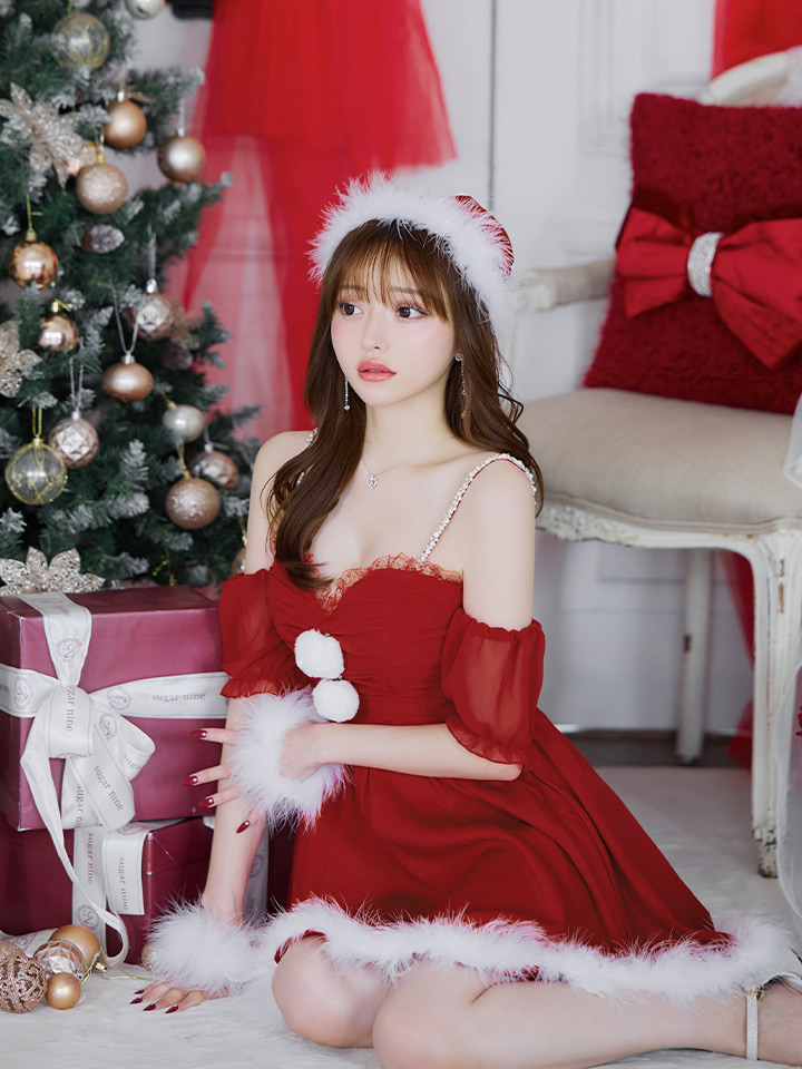 - > 【即日発送】【サンタコス 4点セット】【S-Lサイズ/1カラー】パフスリーブオフショルフレアサンタコスプレ[OF01]
