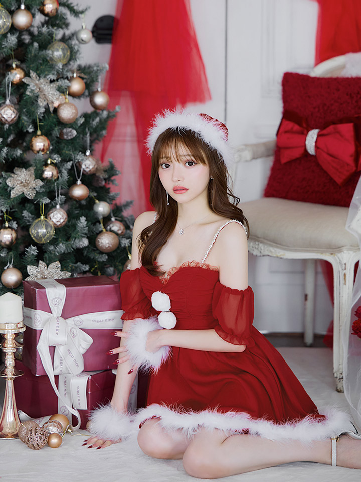 オフショルダーでさりげなく肌見せ出来るサンタコスプレ。