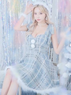 ブルーのフレアサンタが登場! 胸元のギャザーでみんなの目線を独り占め!