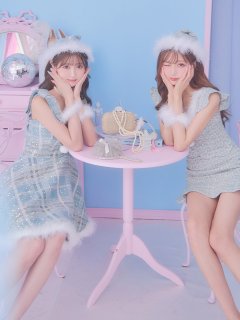 キャミ キャミソール フレアスカート セクシー ファー ブルー
