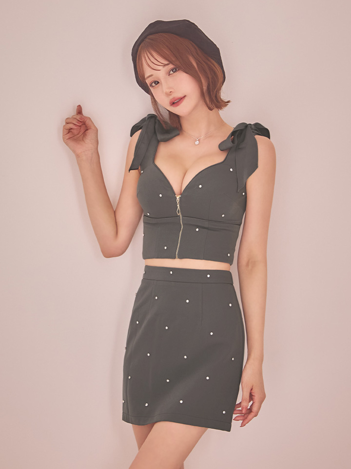 送料無料!リボンショルダービジューセットアップドレス/キャバドレス【XS-XLサイズ/6カラー】[OF03] 【YN】dzwe【一部予約商品/11月上旬-12月上旬発送予定】