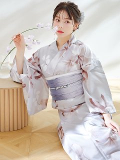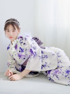 ホワイトフラワーとリーフが描かれた浴衣は上品さを引き立てること間違いなし♡