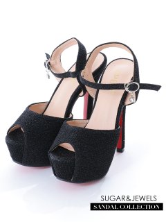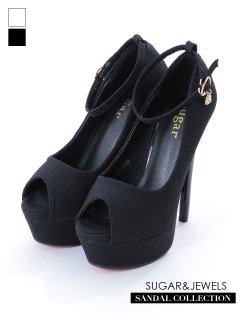 jewelsコラボ商品【COMEX】2color/ 14cmヒール/ ビジューバックル/ アンクルストラップ付き/ オープントゥパンプス[OF02]