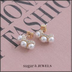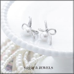 【アクセサリー:ピアス】パールビジューリボンピアス【2カラー】[OF08]