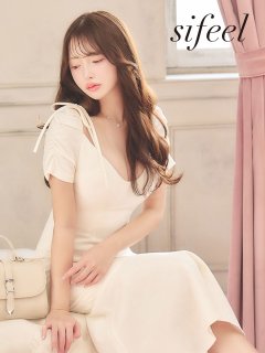 オフショルで大人っぽさに甘さもプラスした万能デザイン。