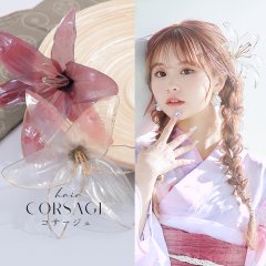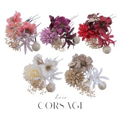 優しいカラーのフラワーコサージュかすみ草とリボンもついていてボリューム感もたっぷり。