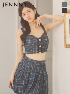 チェックツイードのセットアップでまるでKPOPアイドルの衣装のような印象に♡