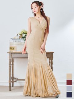 ゴージャスなシャンパンカラーをキラキララメでもっと華やかに仕上げた、ハイライトみたいに輝く大人のミディアムドレス