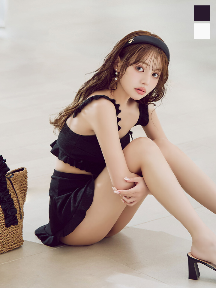 【即日発送】【ビキニ】【水着】立体リボンフリルスカートビキニ 3点セット [YMT]