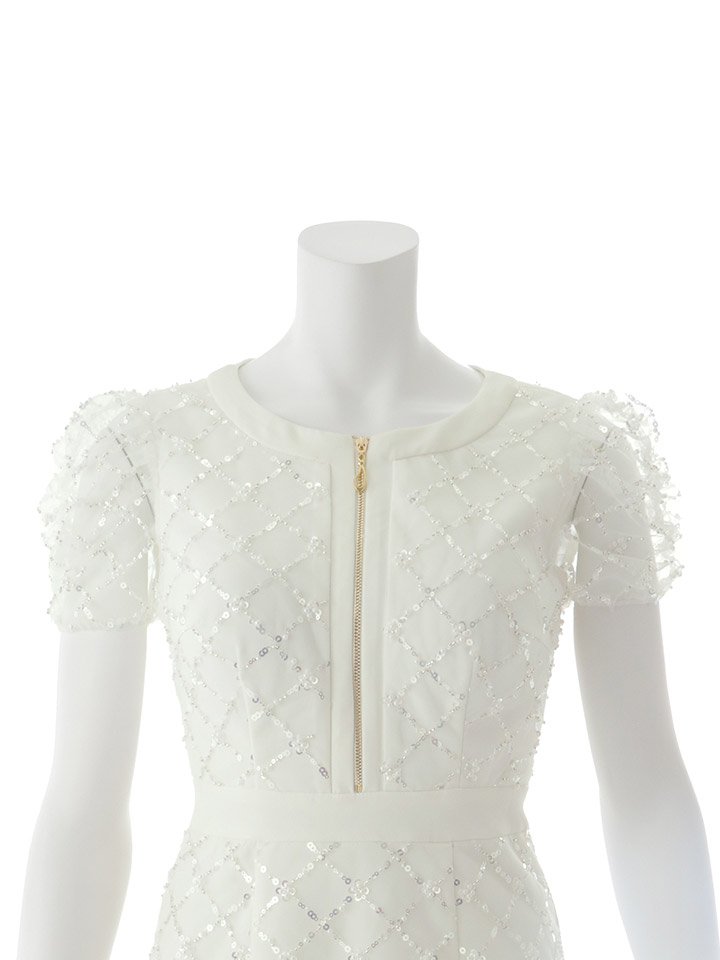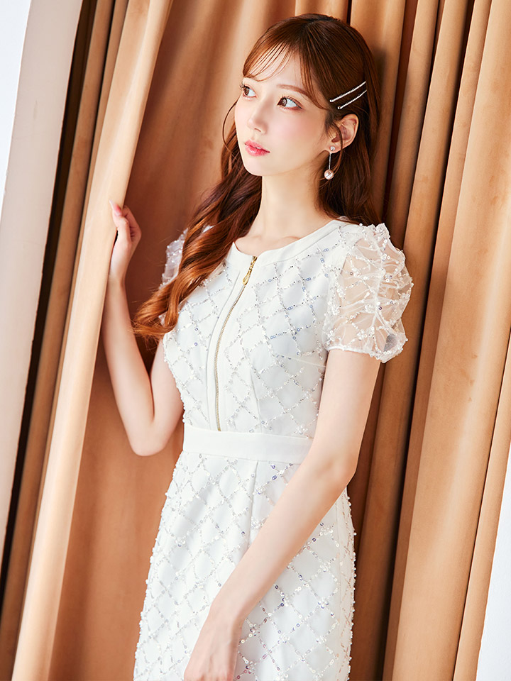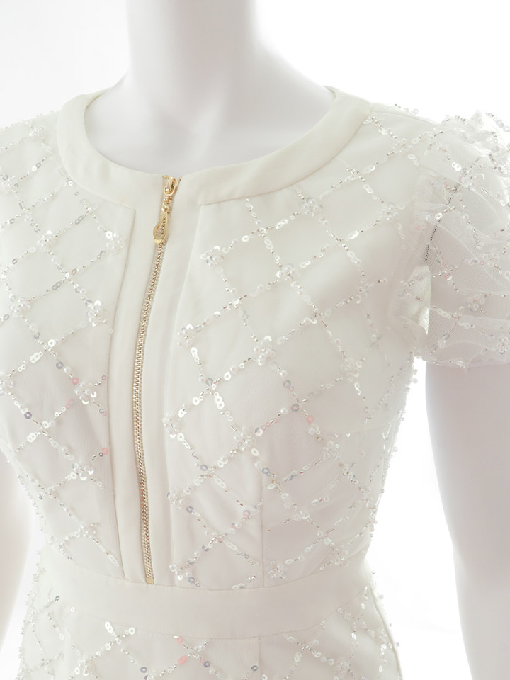 スパンコールでデザインした生地がオシャレキュートな美シルエットも叶えるワンピドレス♡
