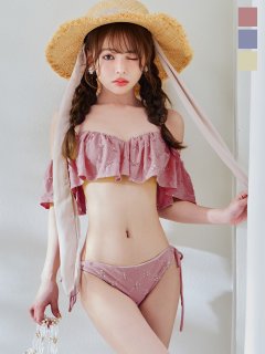 【即日発送】【ビキニ】【水着】 ビジューギャザーフロントリボンビキニ ビキニ 2点セット[YMT]
