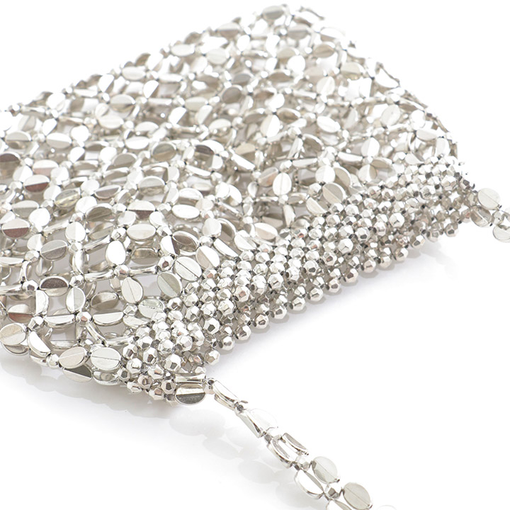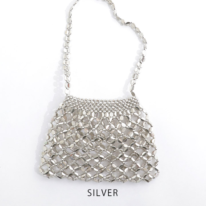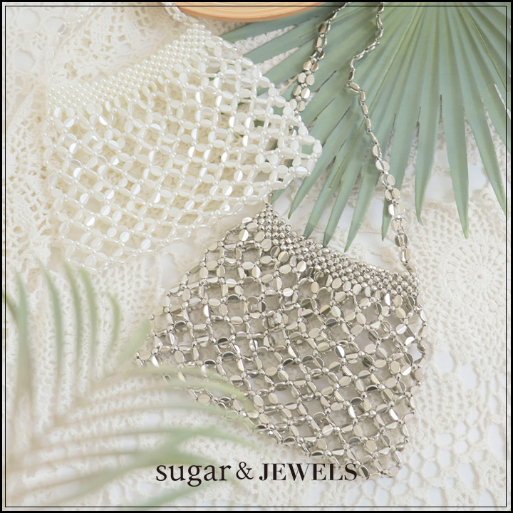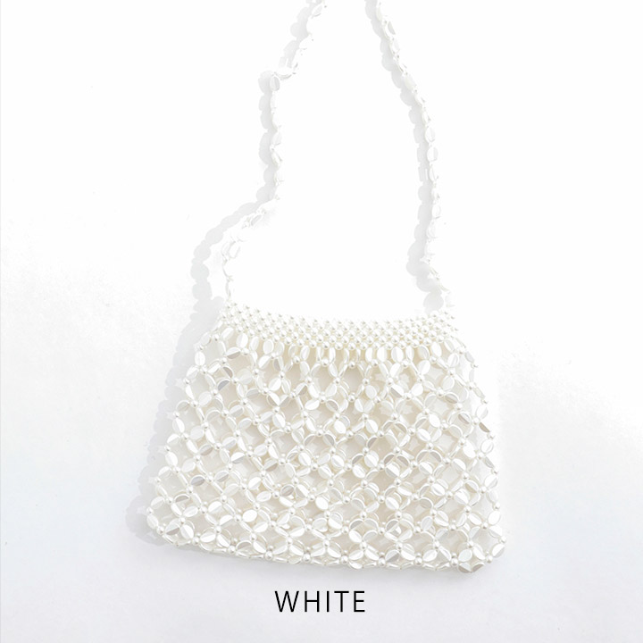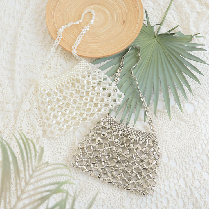 格子柄に編まれたビーズがかわいいハンドバッグ。