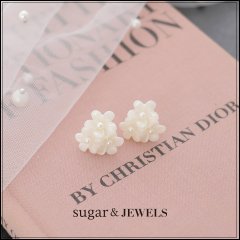 小ぶりのクリアフラワーがあしらわれたピアス。