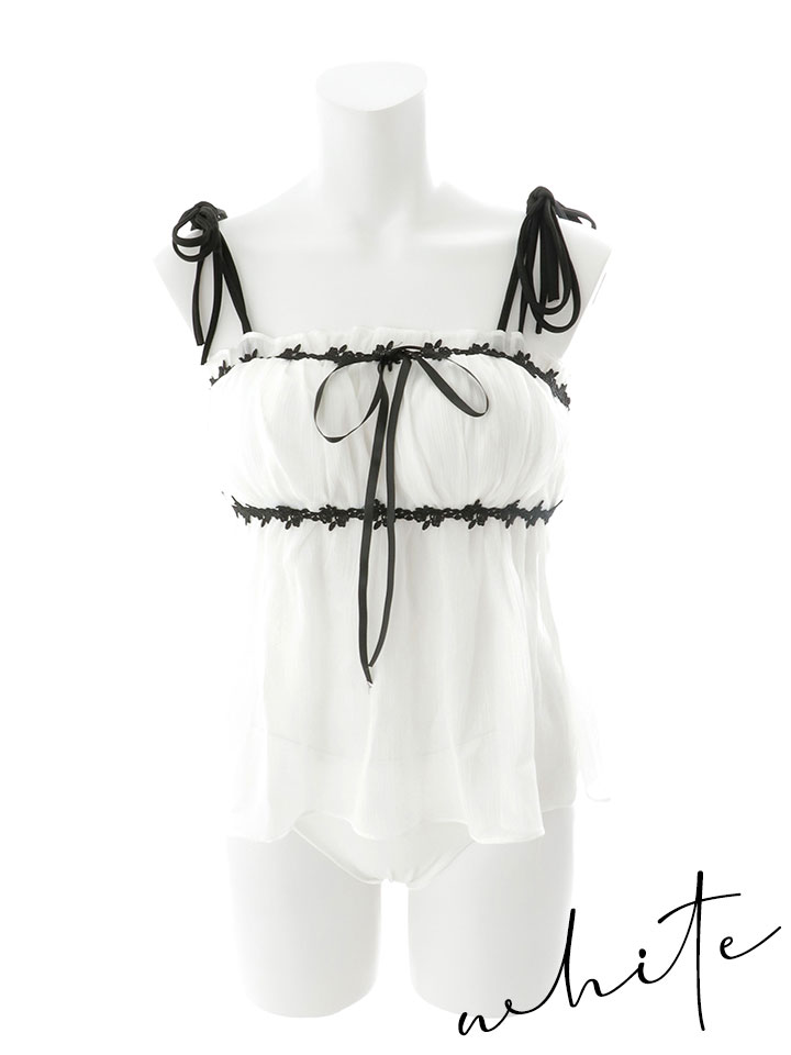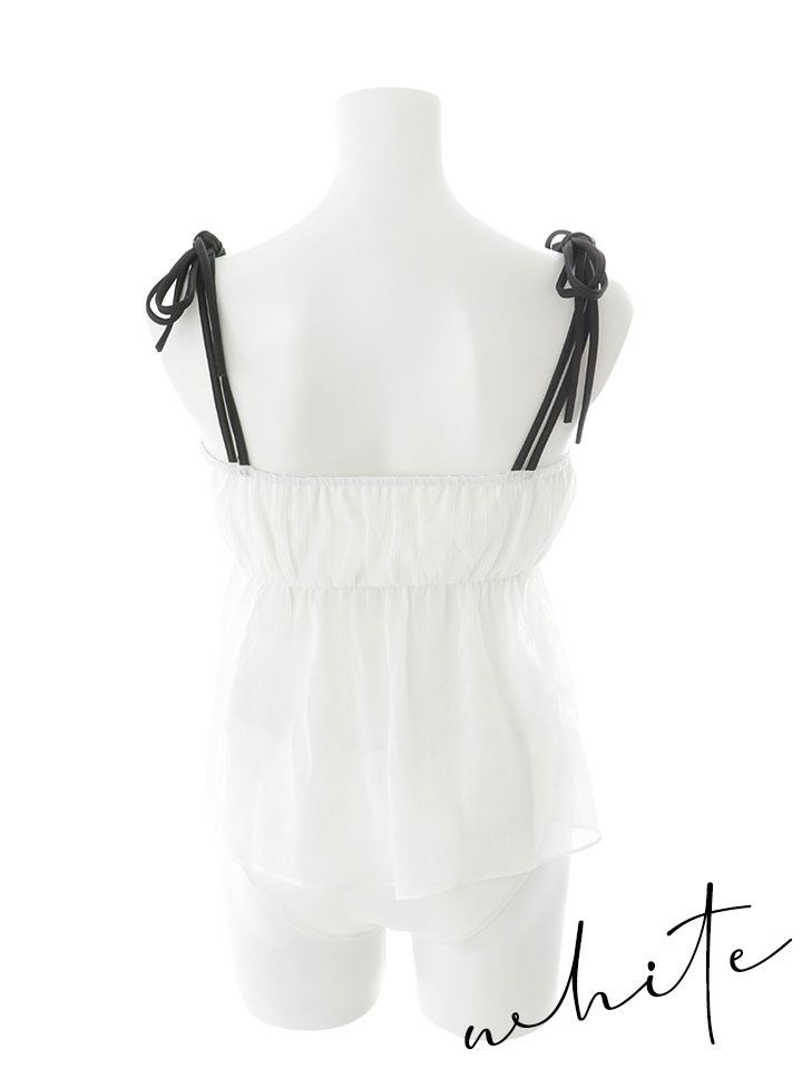 露出少なめ 体型カバー 素材 マテリアル リボン キャミソール ビスチェ