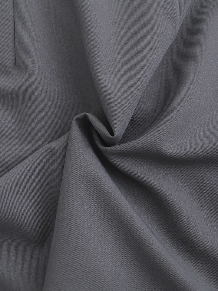 グレーのスーツ生地がクールで気品ある魅力を放つ一着