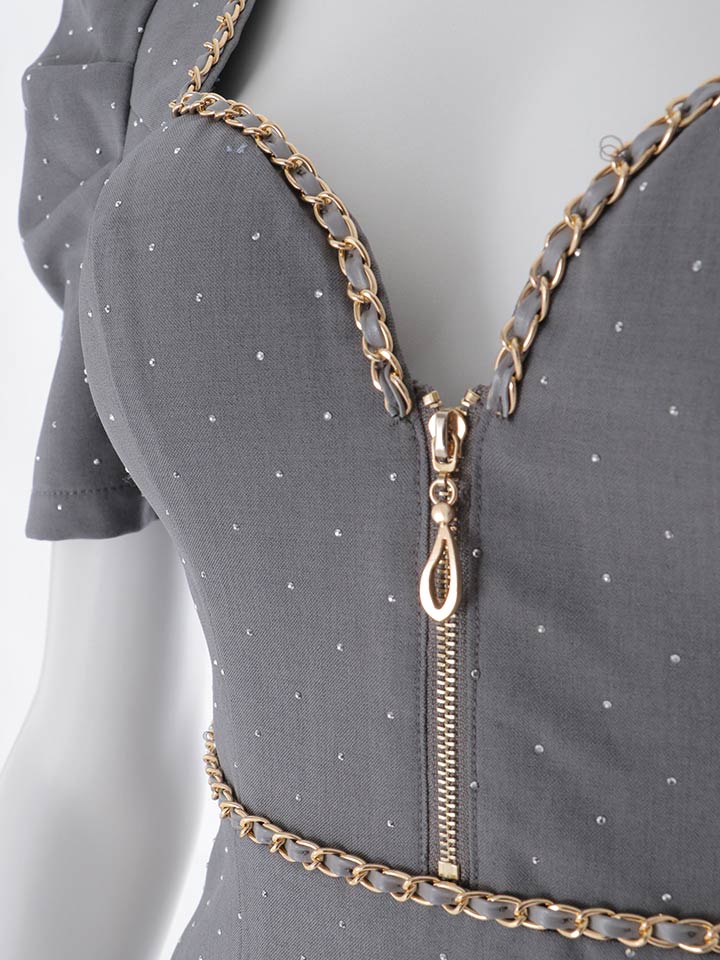 気品あるゴールドチェーンにふわっと可愛いパフスリーブの組み合わせが華やかな雰囲気で溢れる