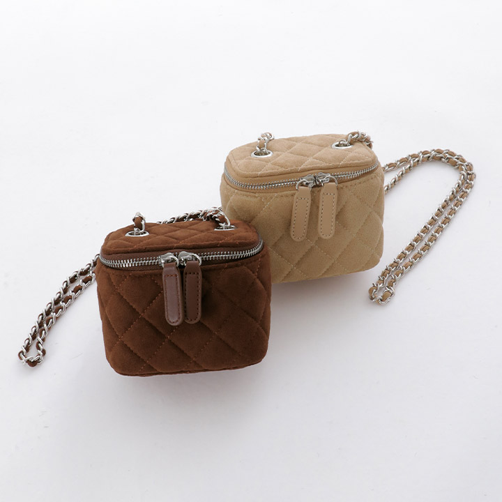 【バッグ】チェーンショルダーキルティングスエードバニティバッグ【Fサイズ/2カラー】[OF04] [B1051-250618-1]