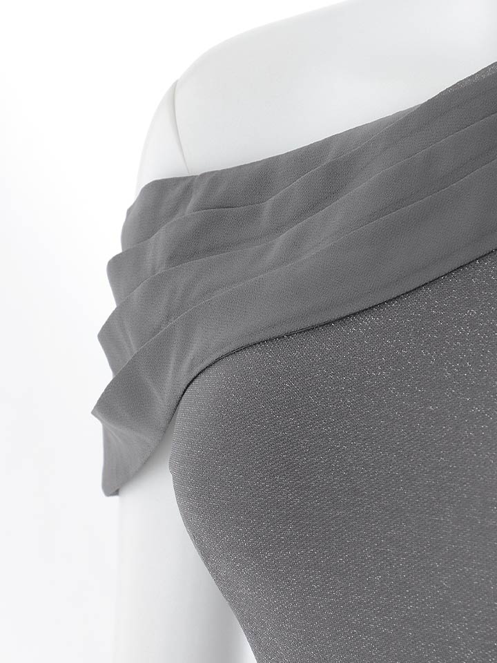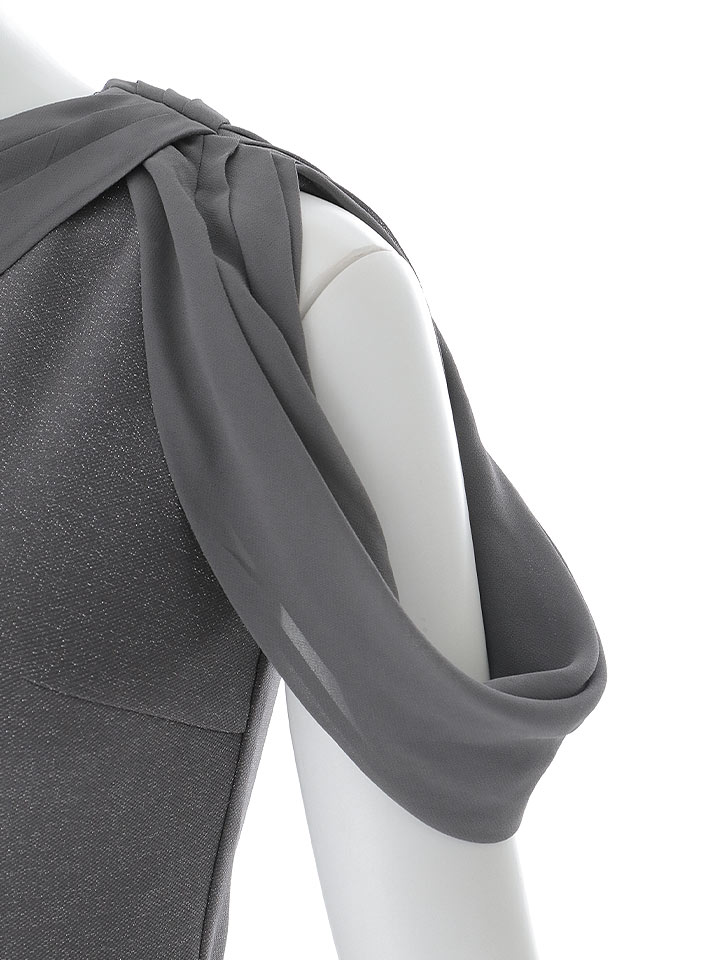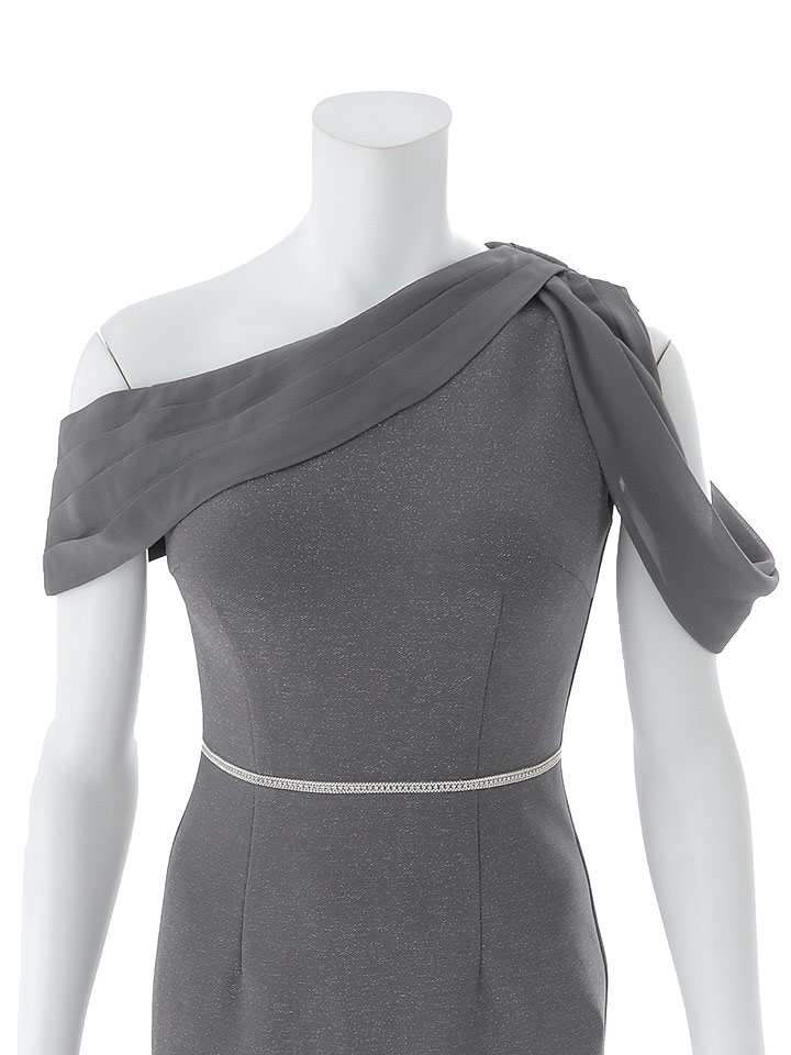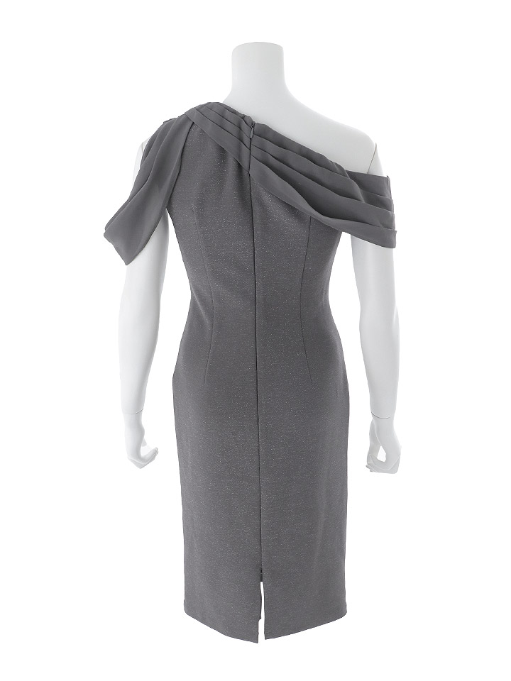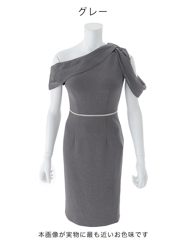 アシンメトリーなデザインが洗練された印象を与えるミディアムドレス。