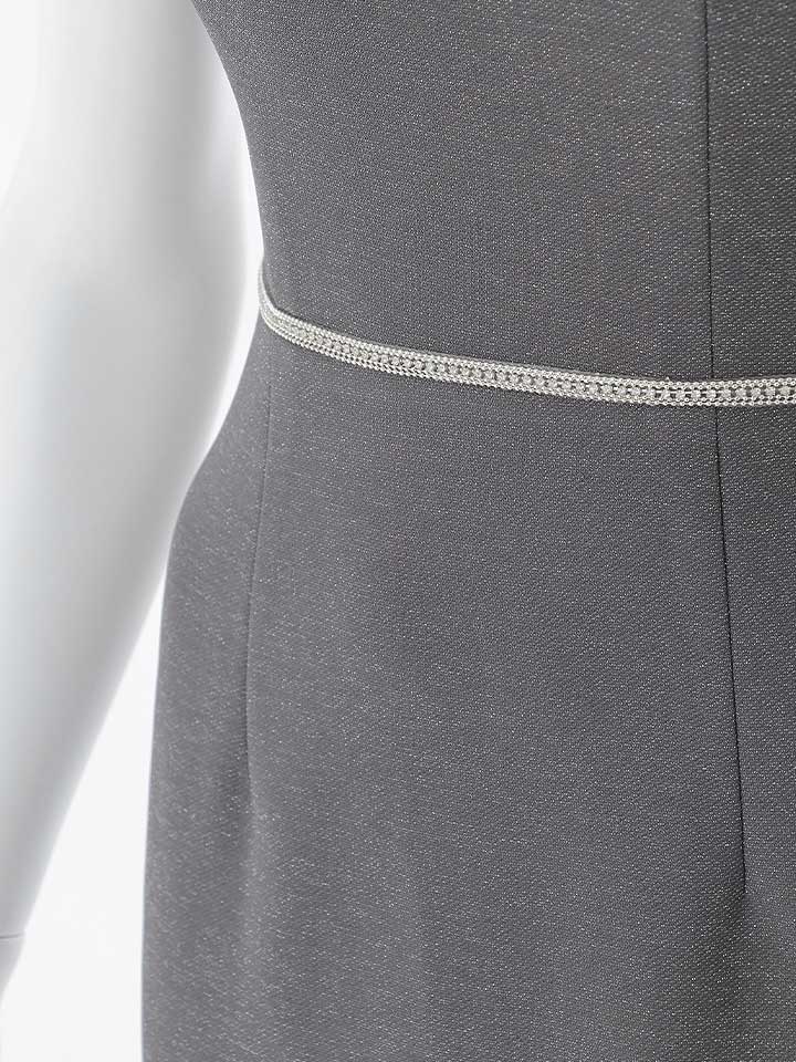 ビジュー付きのウエストベルトがアクセントとなり、シルエットを美しく引き立てます。
