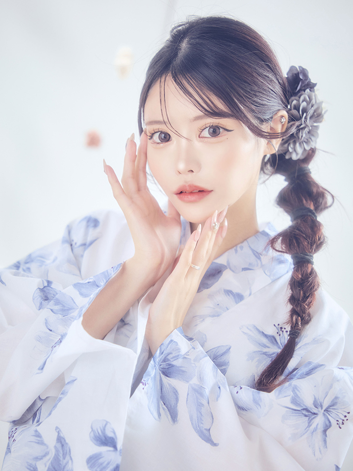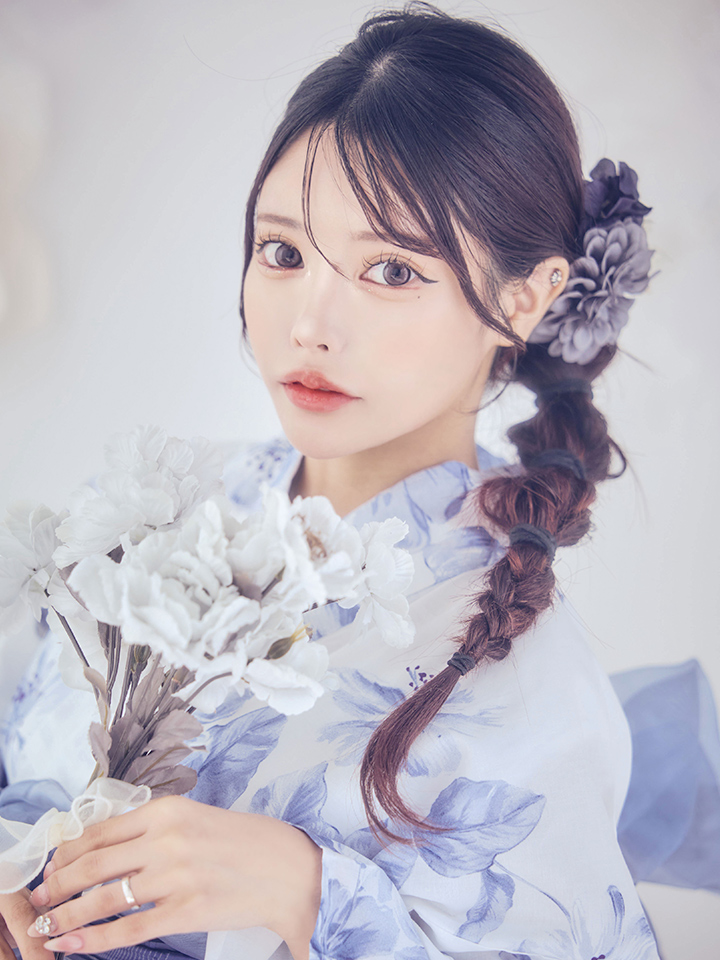 ホワイトに小柄なフラワーが花開くエレガントでちょっぴりセクシーな大人浴衣