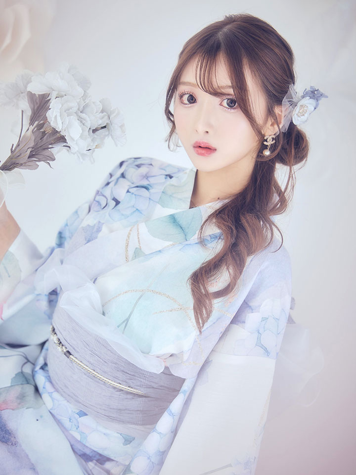 大柄の紫陽花がパッと印象を残す芸術的な浴衣。