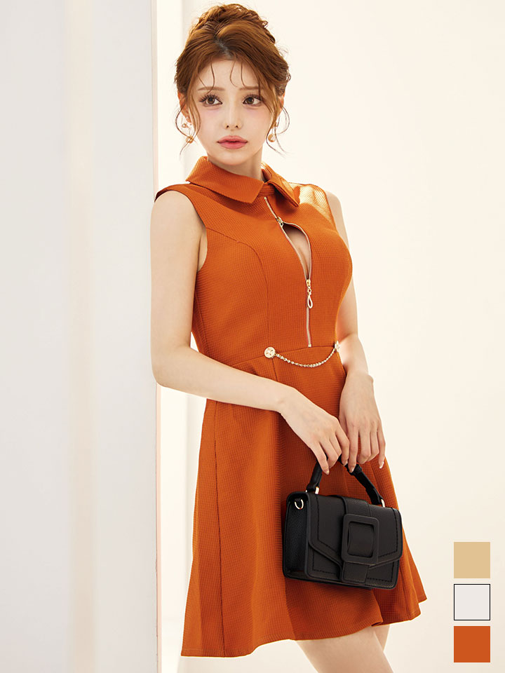 【即日発送】襟付きフロントジップフレアーワンピースドレス/キャバドレス【XS-Lサイズ/3カラー】[OF01] 【SB】dzqvAG [3421SBdzqvAG-250804-1]
