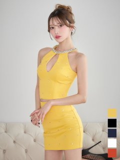 フロントカットアウトスタッズセットアップドレス/キャバドレス【XS-Mサイズ/1カラー】[OF01] 【SB】dzwAG