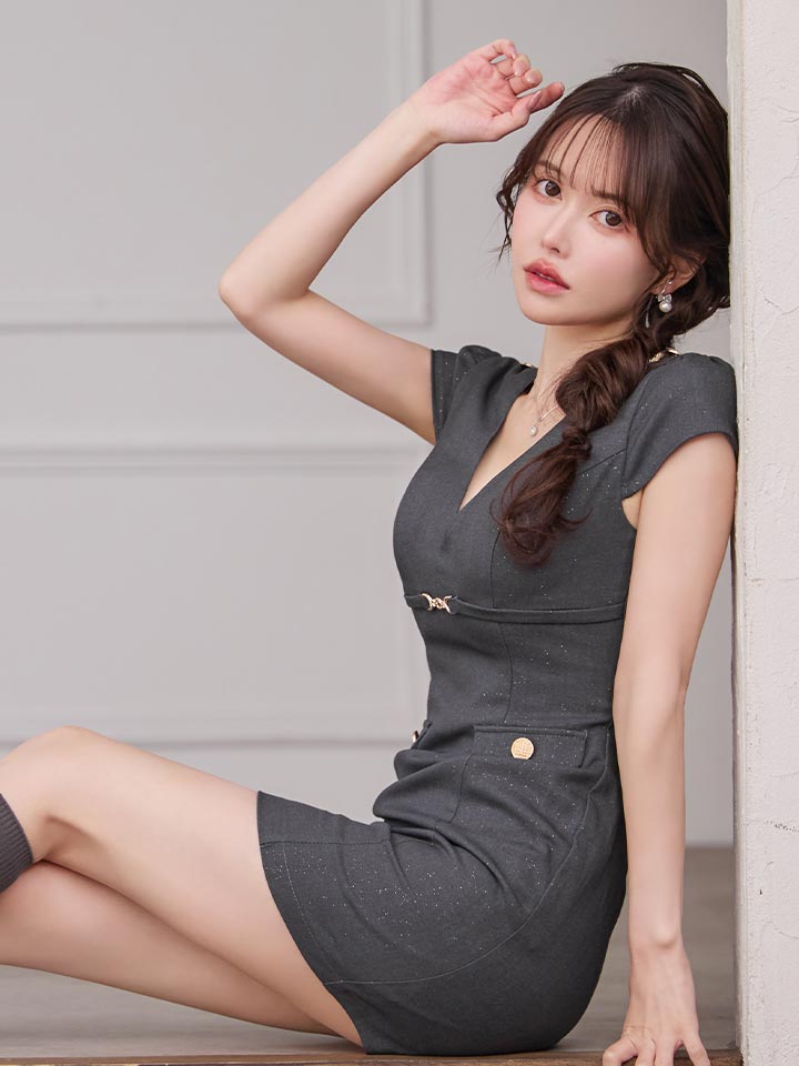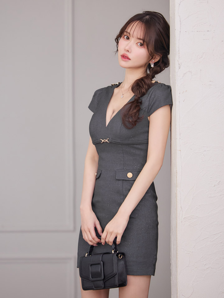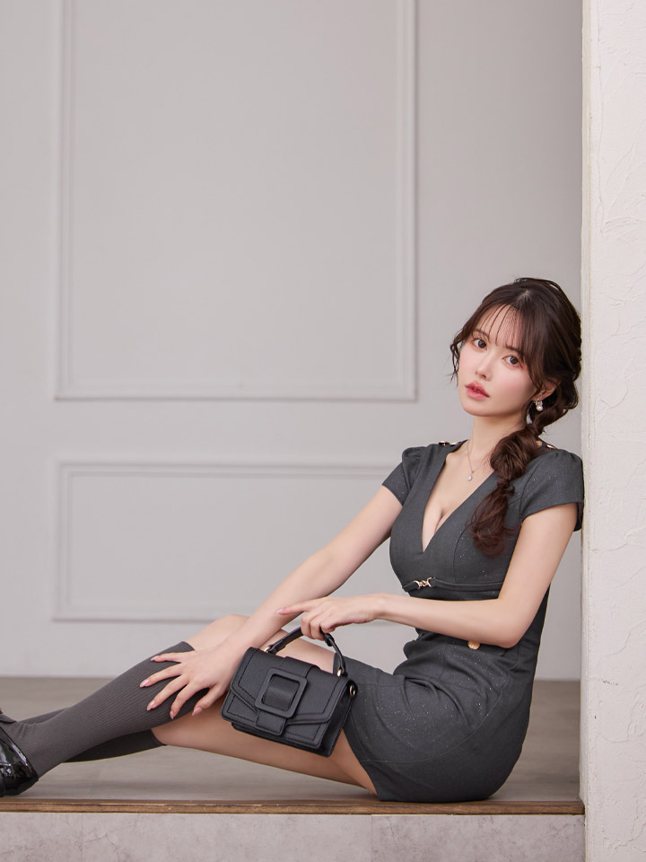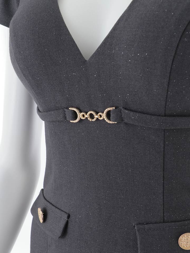 胸元にあしらったベルトデザインが視線を集める、洗練されたドレス。 ボディラインを美しく引き立てるタイトスカートシルエットにさりげなく輝くゴールドの金具が大人の華やかさを添えます。 細部までこだわったディテールが、ワンランク上の着こなしを叶えます。