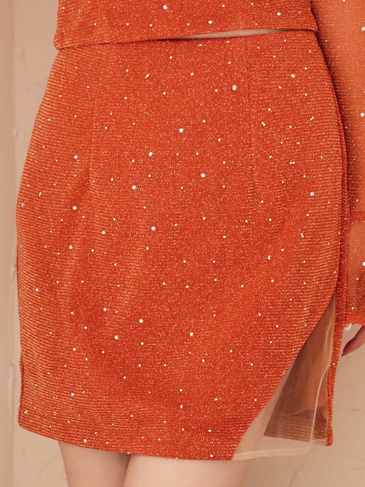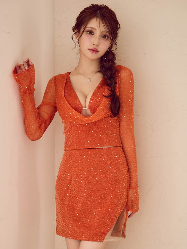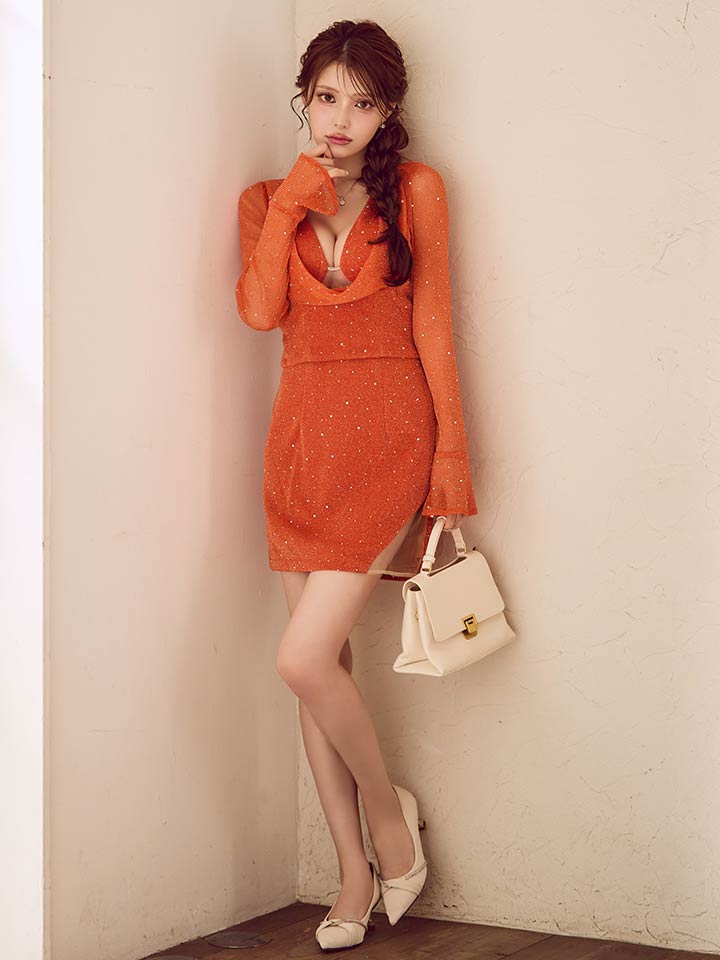 ラメストレッチ素材が艶めくミニドレスセットアップ。