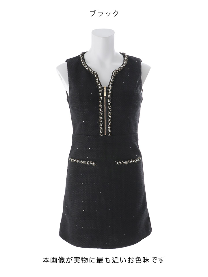 再入荷!スパンコールツイードジップアップミニドレス/キャバドレス【XS-Lサイズ/1カラー】[OF01] 【IM】