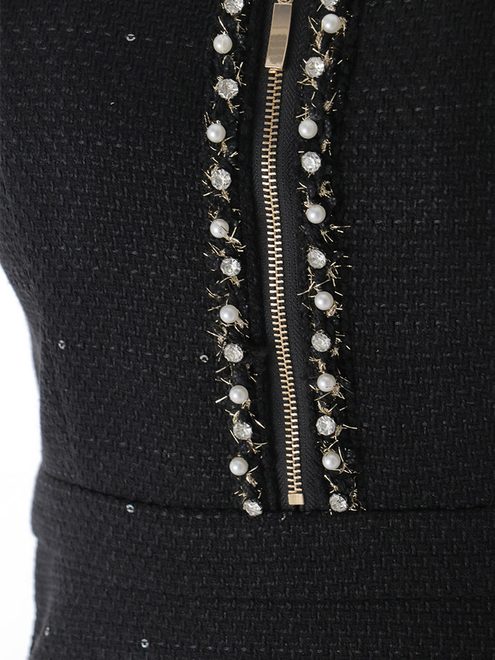 厚手の高級感あるツイード生地にスパンコールをアクセントにした大人上品な胸閉じドレス