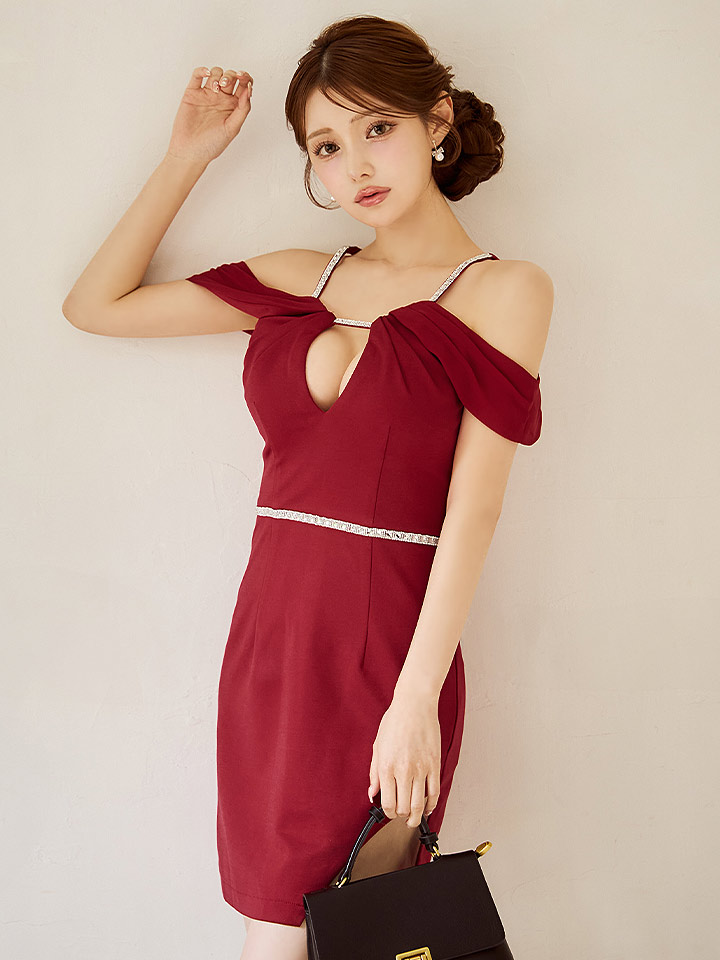 フロントカットアウトオフショルミニドレス/キャバドレス【XS-Mサイズ/1カラー】[OF03] 【YN】dzwuGI [5687YNdzwuGI-250812-1]