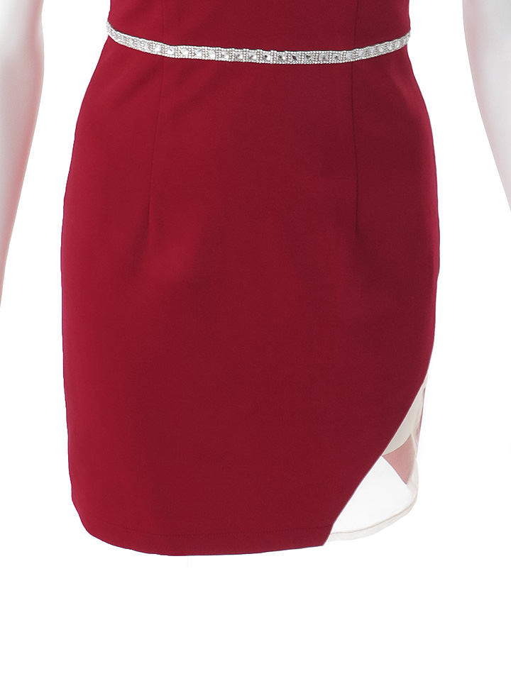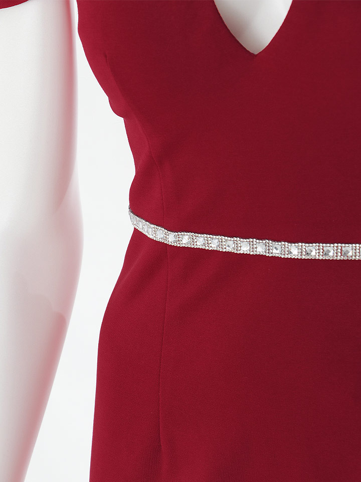 ウエストのビジュー装飾が視線を集め、スタイルアップ効果も抜群。