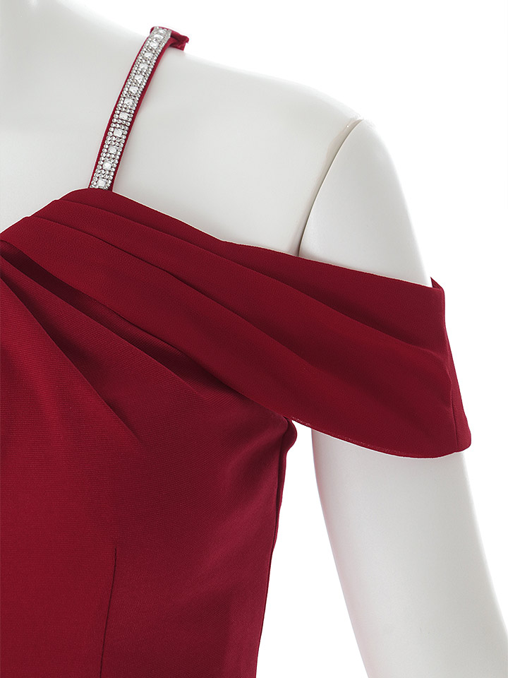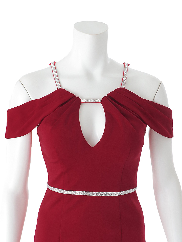 デコルテを美しく魅せるオフショルダーと、女性らしい谷間見せデザインが大人の魅力を漂わせます。
