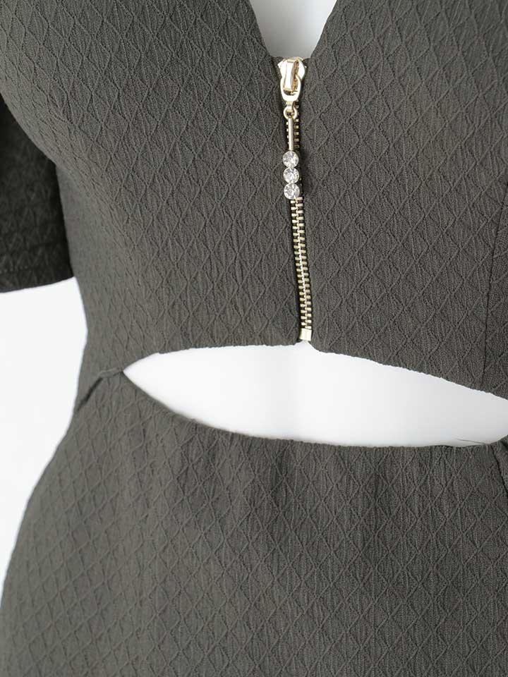 胸元のジッパーで開き具合を自在に調整でき、シーンや気分に合わせた着こなしが叶う一着です♡