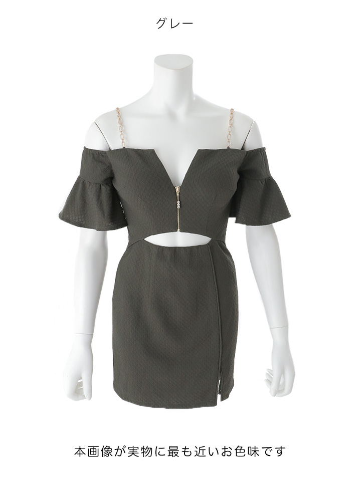 【即日発送】ビジューオフショルフロントジップタイトミニドレス/キャバドレス【XS-Lサイズ/1カラー】[OF03] 【YN】dzcgAG