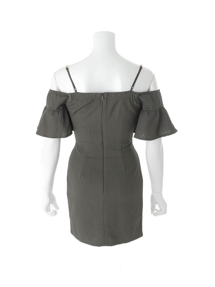 オフショルダーのデザインに、輝くビジューの肩紐が華やぎをプラス+